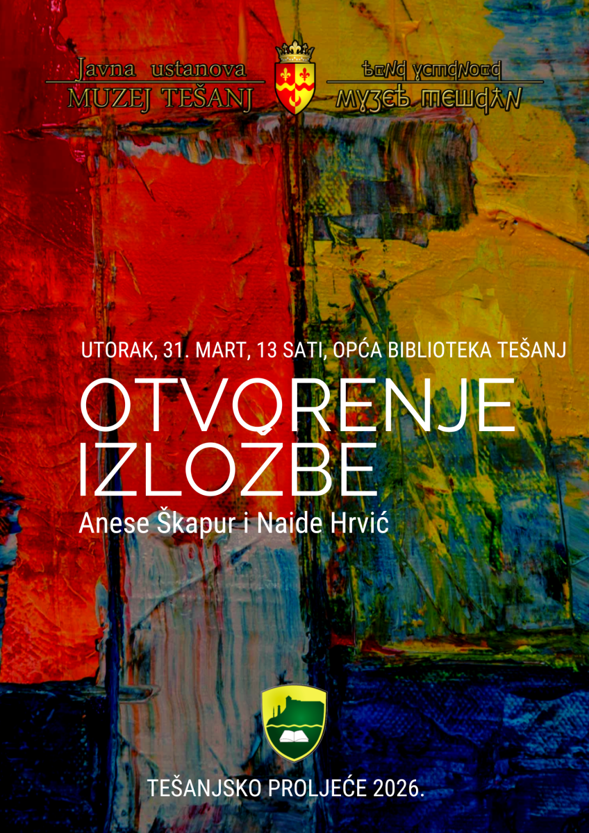 Javna ustanova Muzej Tešanj je u utorak, 31.3.2026. godine, u 13 sati, u prostorijama Opće biblioteke Tešanj priredila otvorenje "Izložbe Anese Škapur i Naide Hrvić". Izložba je dio općinske manifestacije "Tešanjsko proljeće 2026". Na izložbi je predstavljeno 19 likovnih radova sa raznim motivima. Prisutnim posjetiocima obratili su se direktorica Muzeja Tešanj mr. Mensura Mujkanović i autorice. Izložbu je otvorila Pomoćnica Općinskog Načelnika gospođa Azra Muslija. Izložbu su tehnički postavili Kenan Hadžišehić i Nedžad Hadžišehić. Izložba će biti otvorena narednih 10 dana. Zainteresirani posjetioci mogu pogledati izložbu uz prethodnu najavu na broj telefona 032/655-770.